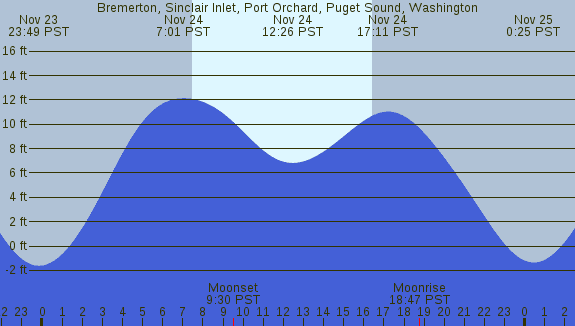 Tidal Heights at Bremerton, Sinclair Inlet, Port Orchard, Puget Sound, Washington