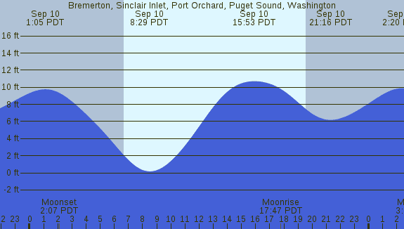 Tidal Heights at Bremerton, Sinclair Inlet, Port Orchard, Puget Sound, Washington