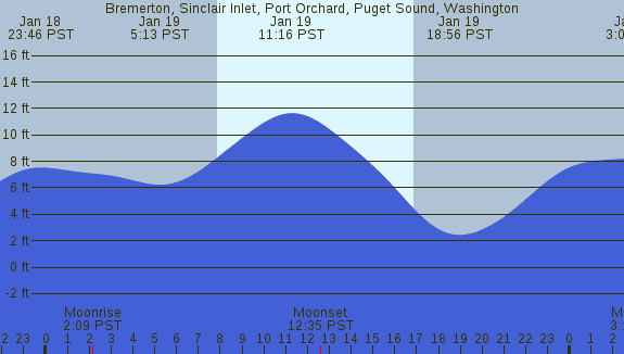 Tidal Heights at Bremerton, Sinclair Inlet, Port Orchard, Puget Sound, Washington