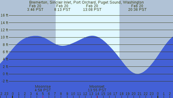 Tidal Heights at Bremerton, Sinclair Inlet, Port Orchard, Puget Sound, Washington