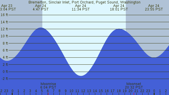 Tidal Heights at Bremerton, Sinclair Inlet, Port Orchard, Puget Sound, Washington
