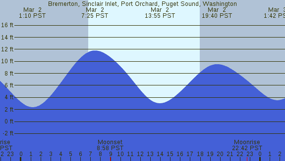 Tidal Heights at Bremerton, Sinclair Inlet, Port Orchard, Puget Sound, Washington