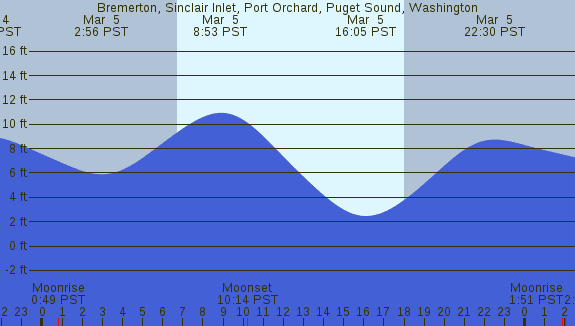 Tidal Heights at Bremerton, Sinclair Inlet, Port Orchard, Puget Sound, Washington