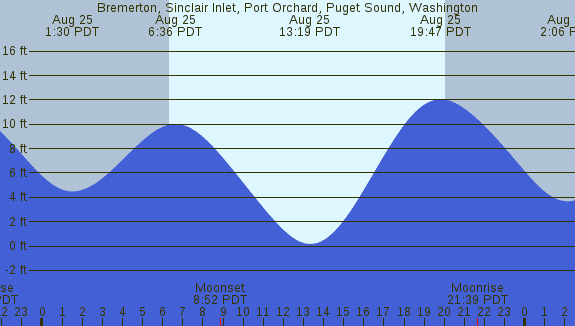 Tidal Heights at Bremerton, Sinclair Inlet, Port Orchard, Puget Sound, Washington