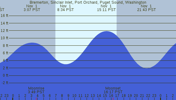 Tidal Heights at Bremerton, Sinclair Inlet, Port Orchard, Puget Sound, Washington