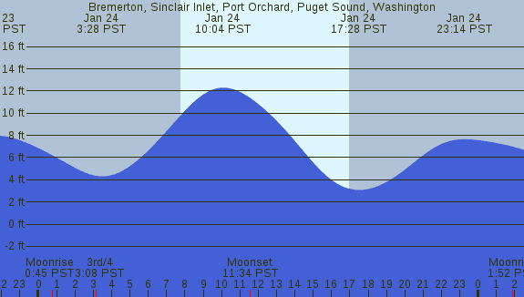 Tidal Heights at Bremerton, Sinclair Inlet, Port Orchard, Puget Sound, Washington