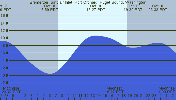 Tidal Heights at Bremerton, Sinclair Inlet, Port Orchard, Puget Sound, Washington