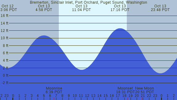 Tidal Heights at Bremerton, Sinclair Inlet, Port Orchard, Puget Sound, Washington