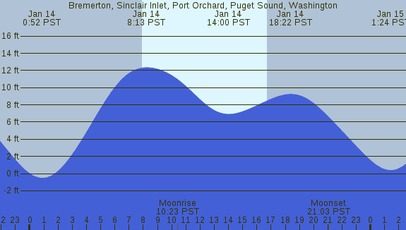 Tidal Heights at Bremerton, Sinclair Inlet, Port Orchard, Puget Sound, Washington