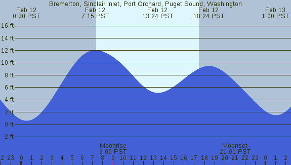 Tidal Heights at Bremerton, Sinclair Inlet, Port Orchard, Puget Sound, Washington