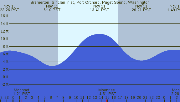 Tidal Heights at Bremerton, Sinclair Inlet, Port Orchard, Puget Sound, Washington