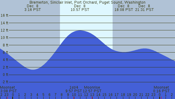 Tidal Heights at Bremerton, Sinclair Inlet, Port Orchard, Puget Sound, Washington