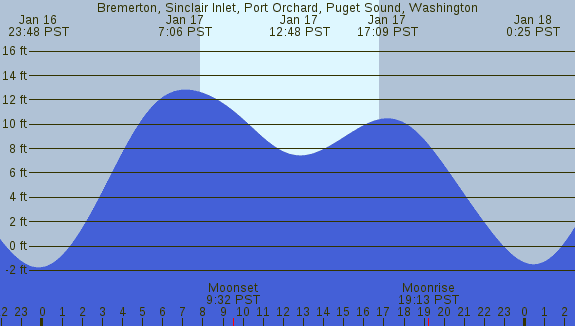 Tidal Heights at Bremerton, Sinclair Inlet, Port Orchard, Puget Sound, Washington
