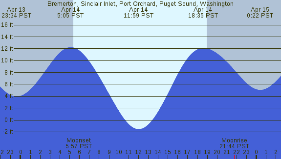 Tidal Heights at Bremerton, Sinclair Inlet, Port Orchard, Puget Sound, Washington