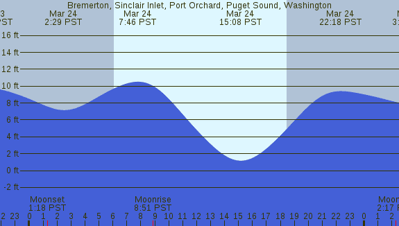 Tidal Heights at Bremerton, Sinclair Inlet, Port Orchard, Puget Sound, Washington