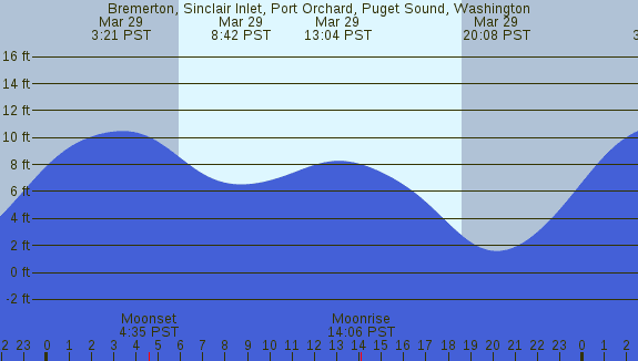 Tidal Heights at Bremerton, Sinclair Inlet, Port Orchard, Puget Sound, Washington