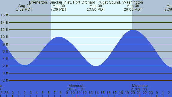 Tidal Heights at Bremerton, Sinclair Inlet, Port Orchard, Puget Sound, Washington