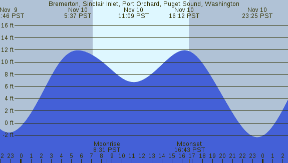 Tidal Heights at Bremerton, Sinclair Inlet, Port Orchard, Puget Sound, Washington