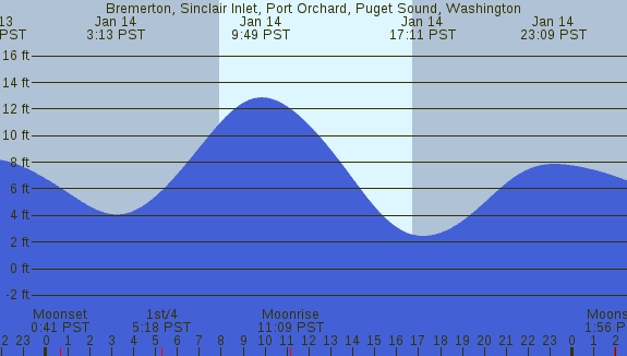 Tidal Heights at Bremerton, Sinclair Inlet, Port Orchard, Puget Sound, Washington