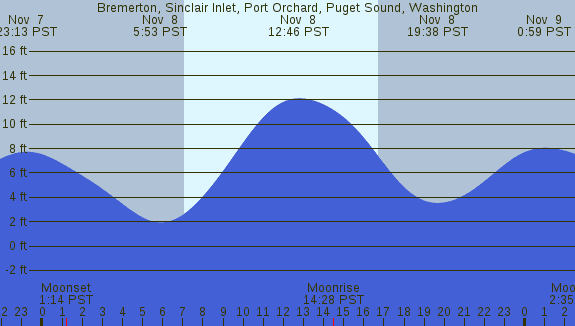 Tidal Heights at Bremerton, Sinclair Inlet, Port Orchard, Puget Sound, Washington