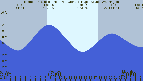 Tidal Heights at Bremerton, Sinclair Inlet, Port Orchard, Puget Sound, Washington