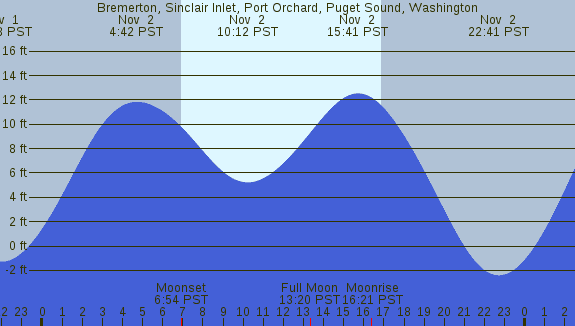 Tidal Heights at Bremerton, Sinclair Inlet, Port Orchard, Puget Sound, Washington