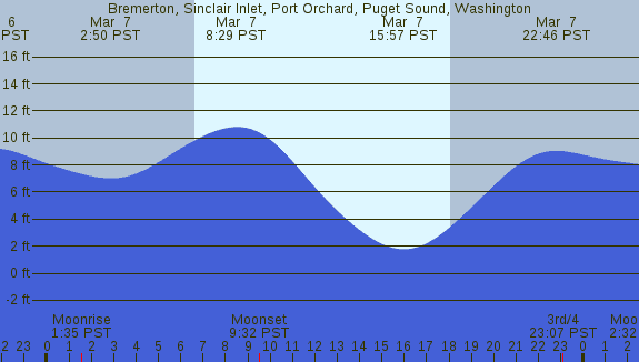 Tidal Heights at Bremerton, Sinclair Inlet, Port Orchard, Puget Sound, Washington