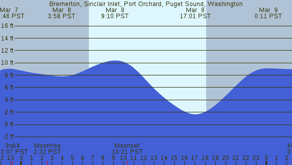 Tidal Heights at Bremerton, Sinclair Inlet, Port Orchard, Puget Sound, Washington