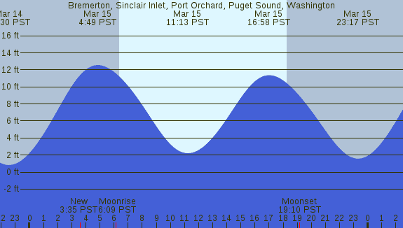 Tidal Heights at Bremerton, Sinclair Inlet, Port Orchard, Puget Sound, Washington