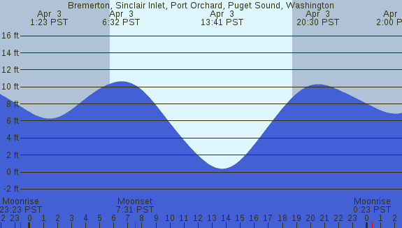 Tidal Heights at Bremerton, Sinclair Inlet, Port Orchard, Puget Sound, Washington