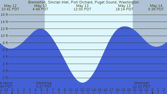 Tidal Heights at Bremerton, Sinclair Inlet, Port Orchard, Puget Sound, Washington