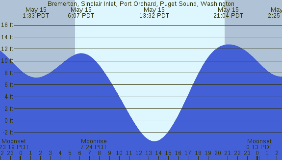 Tidal Heights at Bremerton, Sinclair Inlet, Port Orchard, Puget Sound, Washington