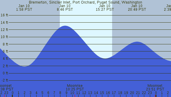Tidal Heights at Bremerton, Sinclair Inlet, Port Orchard, Puget Sound, Washington