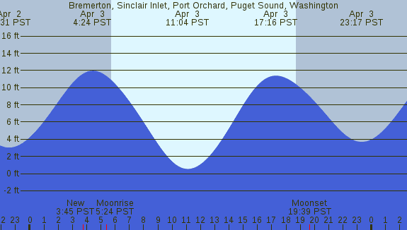Tidal Heights at Bremerton, Sinclair Inlet, Port Orchard, Puget Sound, Washington
