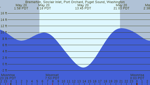 Tidal Heights at Bremerton, Sinclair Inlet, Port Orchard, Puget Sound, Washington