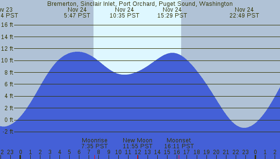 Tidal Heights at Bremerton, Sinclair Inlet, Port Orchard, Puget Sound, Washington