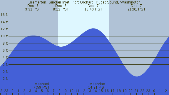 Tidal Heights at Bremerton, Sinclair Inlet, Port Orchard, Puget Sound, Washington