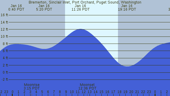 Tidal Heights at Bremerton, Sinclair Inlet, Port Orchard, Puget Sound, Washington