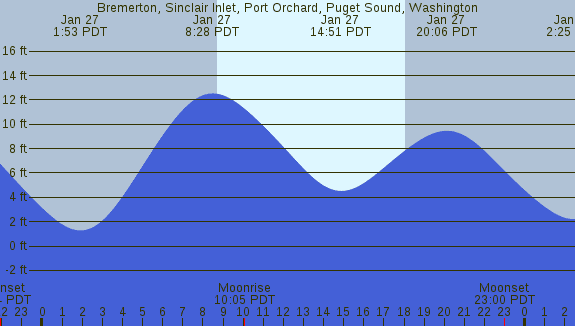 Tidal Heights at Bremerton, Sinclair Inlet, Port Orchard, Puget Sound, Washington