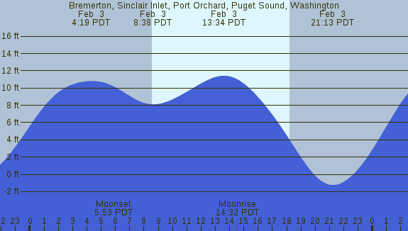 Tidal Heights at Bremerton, Sinclair Inlet, Port Orchard, Puget Sound, Washington
