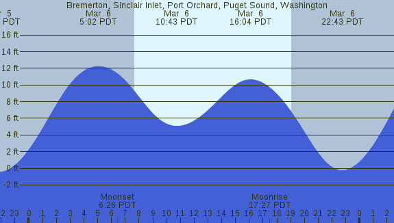 Tidal Heights at Bremerton, Sinclair Inlet, Port Orchard, Puget Sound, Washington