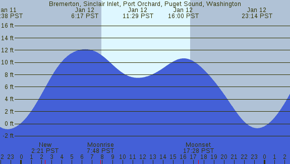 Tidal Heights at Bremerton, Sinclair Inlet, Port Orchard, Puget Sound, Washington