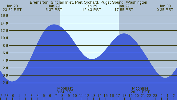 Tidal Heights at Bremerton, Sinclair Inlet, Port Orchard, Puget Sound, Washington
