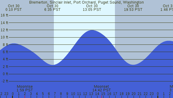Tidal Heights at Bremerton, Sinclair Inlet, Port Orchard, Puget Sound, Washington