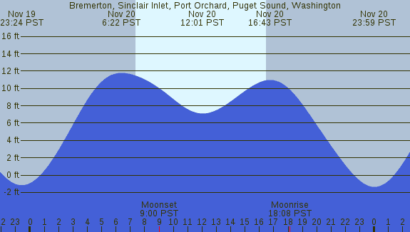 Tidal Heights at Bremerton, Sinclair Inlet, Port Orchard, Puget Sound, Washington