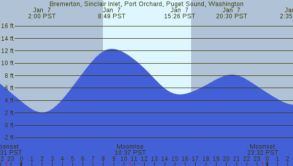 Tidal Heights at Bremerton, Sinclair Inlet, Port Orchard, Puget Sound, Washington