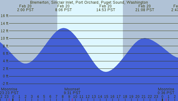 Tidal Heights at Bremerton, Sinclair Inlet, Port Orchard, Puget Sound, Washington