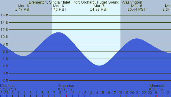 Tidal Heights at Bremerton, Sinclair Inlet, Port Orchard, Puget Sound, Washington