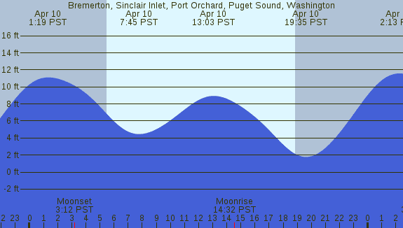 Tidal Heights at Bremerton, Sinclair Inlet, Port Orchard, Puget Sound, Washington