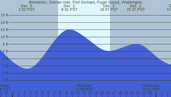Tidal Heights at Bremerton, Sinclair Inlet, Port Orchard, Puget Sound, Washington